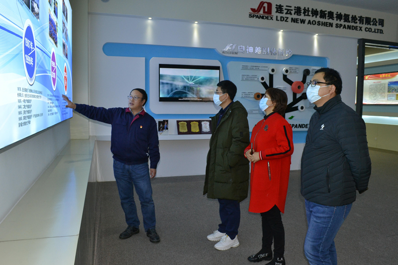 11月23日,国家纺织产品开发中心总工程师陈宝建一行来公司进行国家差别化功能性氨纶开发基地的资质实地考评工作。公司总经理张斌等陪同考察调研。