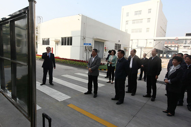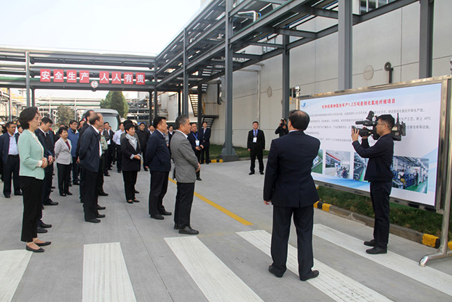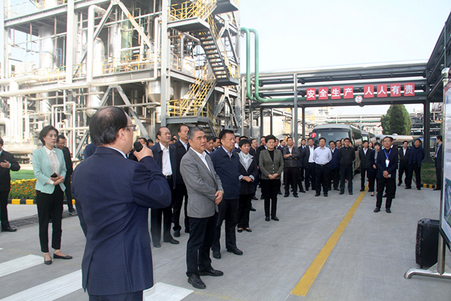 10月8日,全市第三季度经济形势分析会暨重点项目现场观摩会走进氨纶公司。市四套班子全体负责同志、秘书长,市委办公室、研究室主任,市委、市政府相关副秘书长,市政府办公室主任,各县区(板块)党政主要负责同志以及市各有关部门主要负责同志一行70余人参加观摩。集团公司党委书记、董事长杨龙、总经理胡建明陪同。