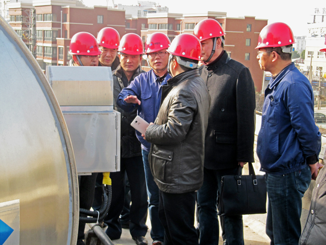 2015年12月2日,环保厅苏北督查组主任成杰、市环保局局长韩尚富一行来我公司督查环保工作,督查组在听取了氨纶公司有关固废处理、废气处理方面的介绍后,到现场实地查看了氨纶公司的废气处理机的运行情况,对废气处理机的运行效果给予了充分肯定。(安全部 仲惠民)