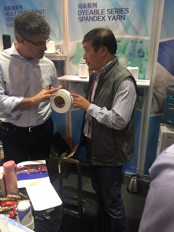 展会聚集了大量纺织行业尖端企业和精英。展会期间,奥神氨纶的展台吸引了无数观展者的驻足。本次展会历时三天(10月13-15日),奥神氨纶共接待国内外客户两百余人次,覆盖了欧洲、亚洲、南美、中东等21个国家,为我们开拓国际市场收集了宝贵的客户资源。