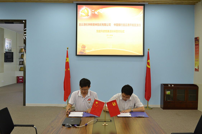 中行开发区支行与杜钟氨纶公司有着良好的合作渊源,双方以此为契机,相互学习,加强互动,共同提高,推动党建共建及廉洁共建各项工作。同时希望建立长效的、全方位的沟通交流机制,通过党建共建促进业务创新发展,实现双方在银团贷款、贸易结算等方面的广泛合作。随后,双方共同签署了《党建共建暨廉洁伙伴协议书》,拉开了合作序幕。