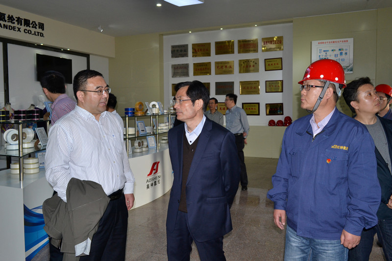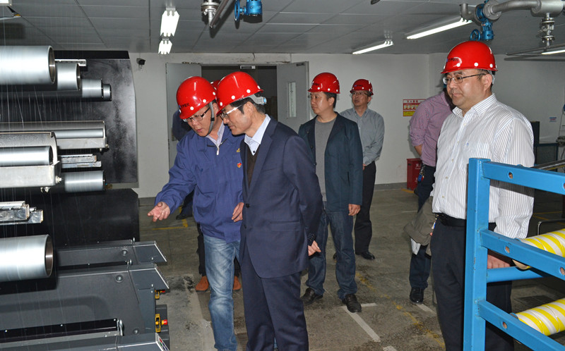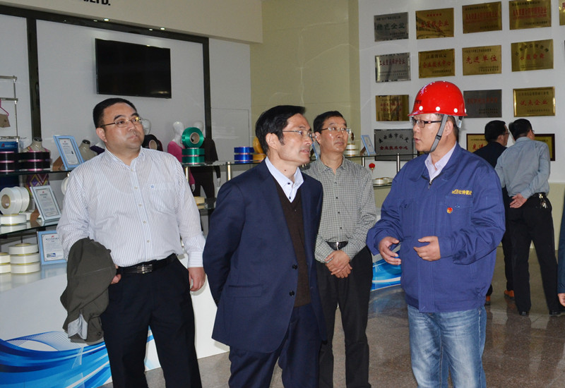 4月17日上午,市国资委主任徐丙超一行来我公司调研,集团公司董事长杨龙、总经理胡建明陪同调研。 徐丙超主任一行先后参观了公司展厅、七期生产现场、仓库等地,听取了企业介绍,并饶有兴趣地询问了解了关于氨纶生产工艺、流程、市场、应用等方面的信息。 办公室